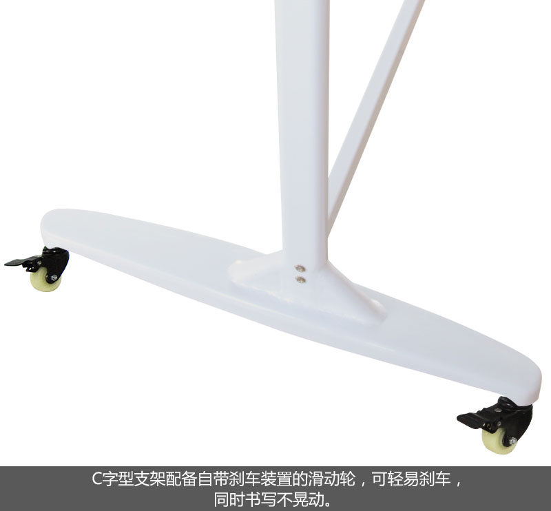 架子横梁安装高强度铝合金笔托,长300mm宽71mm,铝合金笔槽壁厚≥1.0mm,ABS工程塑料笔托包角,配有4个高强度工程双刹轮。