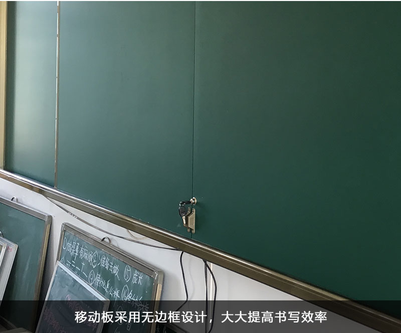 可通过滑动前面的黑板,实现传统教学与现代多媒体教学的完美结合。本系列产品采用优质铝合金边框,