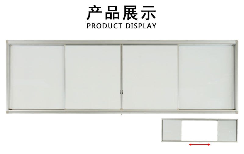 2、基本结构:左右推拉结构,由两件固定白板和两件移动板组成。