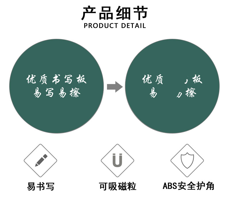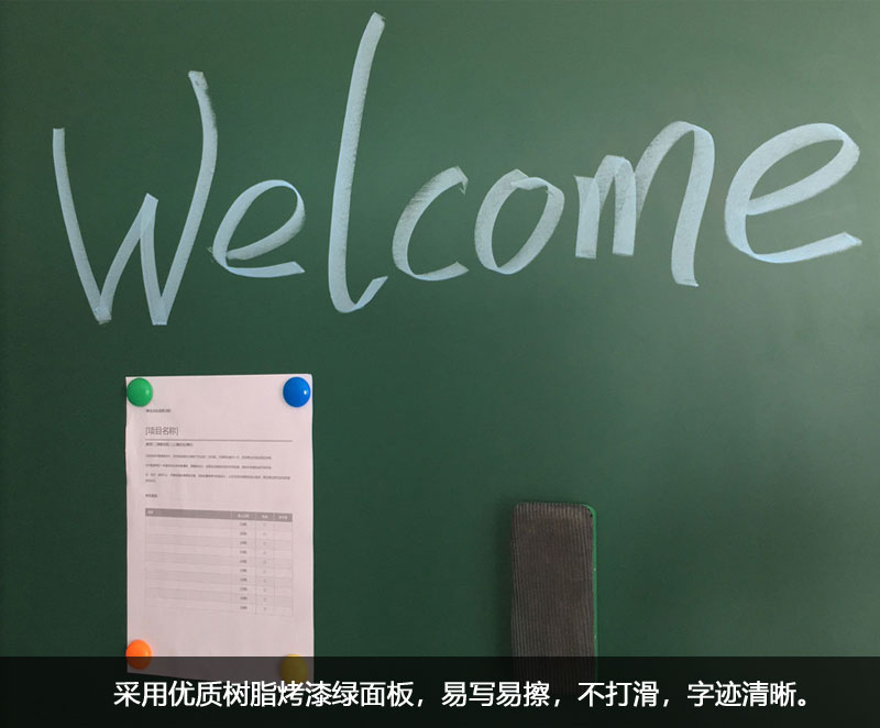 3、书写面材质:采用优质树脂烤漆板、墨绿色,厚度≥0.3mm,硬度≥5H(铅笔硬度),书写涂层≥30μm。