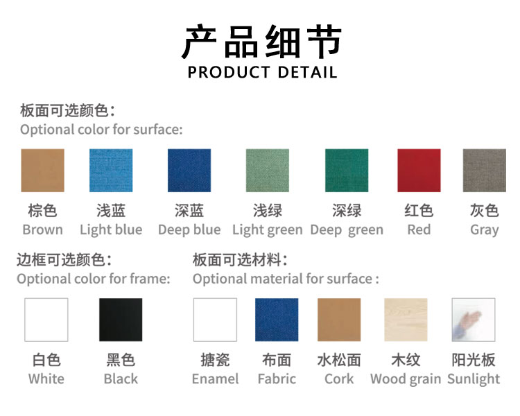 • 底板:树脂烤漆白板(可定制布面)