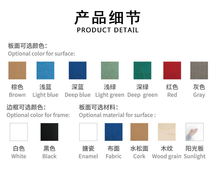 • 面板:白板(可定制水松板/布面)